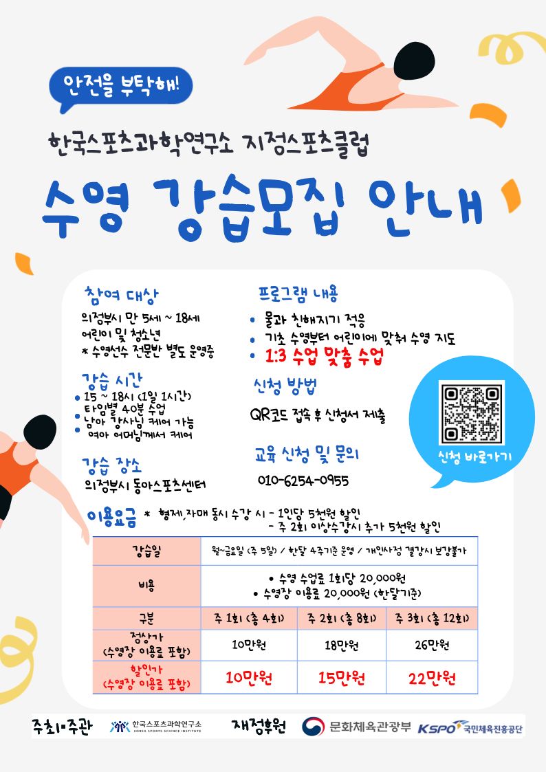 2026 지정스포츠클럽 어린이 및 청소년 수영 강습 모집